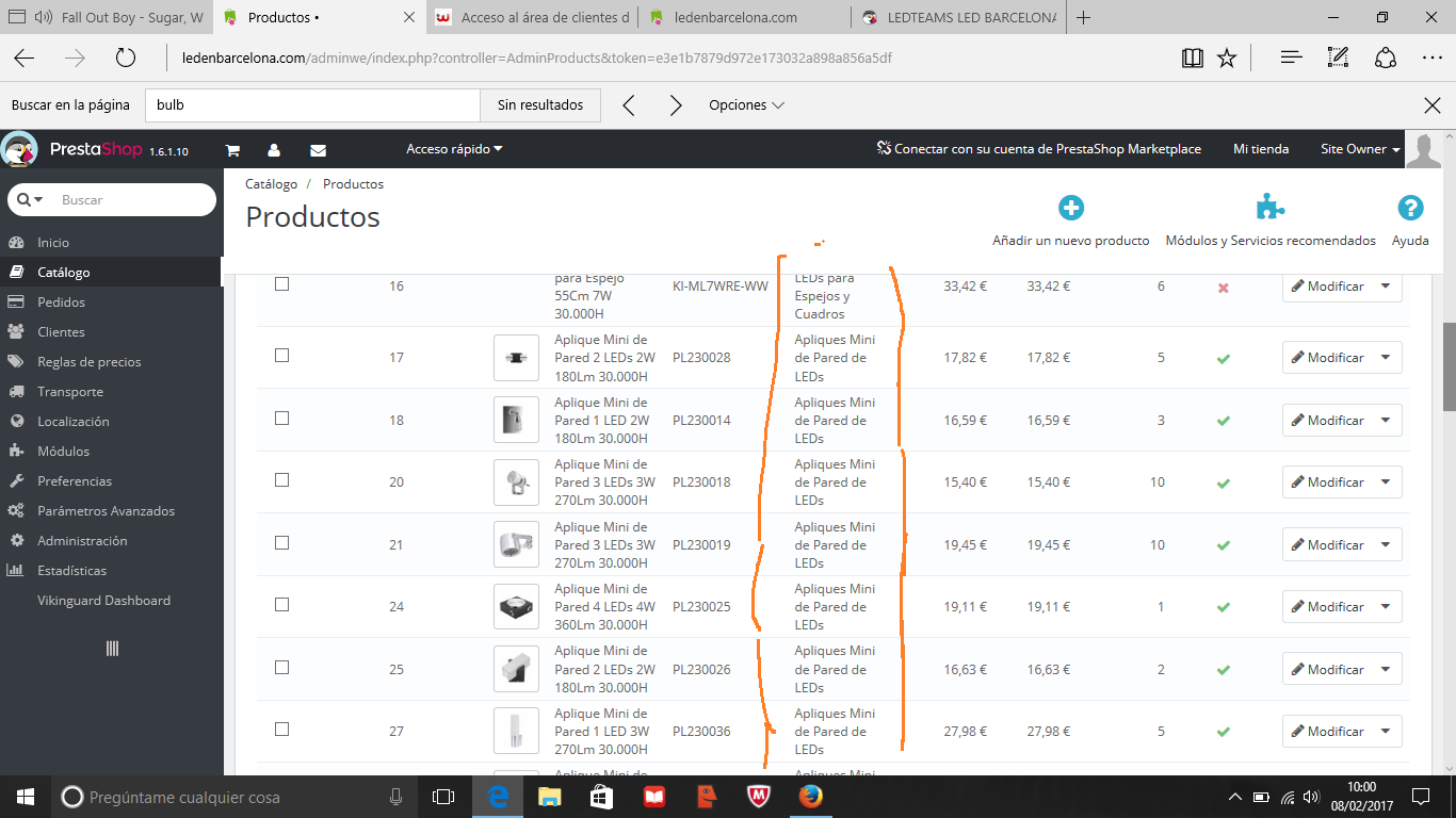 ledteams Posted February 8, 2017 Share Posted February 8, 2017 (edited) Buenos dias tengo un problema , mi distribuidor de productos me da un modulo para importarlos .. y funciona correctamente porque en otras webs lo he tenido y me a ido bien, en esta se instala... bien y envia bien los datos por lotes.. crea sus categorias etc el problema es que cuando busco los productos en sus categorias no estan.. es como si no estuvieran asociados. en cambio en el backoffice si miro en catalogo productos si aparecen cargados y lo mas raro es que aparece como si estuvieran en una categoria.. pero al entrr al producto no esta asociado y he de acerlo uno a uno. alguien sabe porque ? ledenbarcelona.com es la web gracias de antemano. Edited February 8, 2017 by ledteams (see edit history) Link to comment Share on other sites More sharing options...