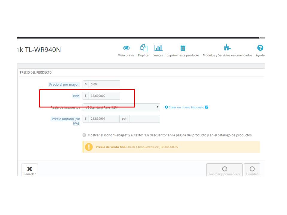 SatcomTec Posted February 9, 2017 Share Posted February 9, 2017 (edited) Estimado amigos del Foro. 聽 Espero que me puedan ayudar.. 聽 Tengo un problema, he exportado el archivo CSV formato excell desde la secci贸n Cat谩logos de productos para hacer las pruebas de cambiar los precios Base y volverlo a subir, usando la opcion de Importar archivo CSV. Pero veo el inconveniente que los precios del archivo en excel del CSV exportado esta en formato de Miles, como puedo configurar la visualizaci贸n de los precios Base 聽en el Back Oficce 聽con punto y coma de forma de delimitar milies y decimales, para que que al momento de la descarga del archivo CSV aparecan bien los precios.. Lo que quiero que el precio Base aparezca bien delimitado como el precio Final de la tabal excel.. 聽 Aqui les dejo el panatallazo de mi problema, como ejemplo vea el ID de Producto 11 en recuadro rojo, espero que me puedan ayudar: 聽 聽 Aqui se ve bien el precio Final pero el Base esta en el orden de los millones...!!! 聽 聽 Aqui se ve bien el precio Base...!!! 聽 聽 Al colocar aqui el precio en PVP, automaticamente se reacomoda colocando el punto y no pone comas 聽 Edited February 9, 2017 by SatcomTec (see edit history) Link to comment Share on other sites More sharing options...