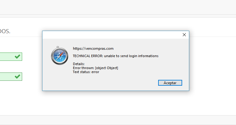 jaimelesmes12 Posted February 9, 2017 Share Posted February 9, 2017 Hola llevamos tiempo tratando de arreglar este problema y no logramos encontrar la solución, sucede que se loguea un cliente en el checkout con su clave y usuario y aparece este error: technical error unable to send login information le da aceptar y finalmente le permite loguearse, en ocasiones no le permite y simplemente hay que volver a poner los datos para que la pagina lo reconozca, finalmente cuando está logueado va al home directamente y aparece este otro error: Impossible to add the product to the cart. Please refresh page donde la página se pone toda negra, por favor espero que nos puedan ayudar o dar algunas pistas para solucionar este doble error que me imagino son por el mismo motivo, muchas gracias espero respuesta. Si gustan pueden entrar y hacer la prueba: vencompras.com Usuario: [email protected] Clave: 123456 Link to comment Share on other sites More sharing options...