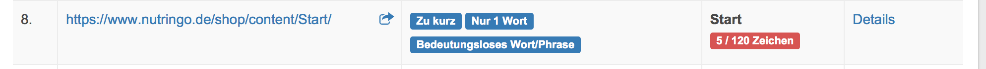 rictools Posted February 16, 2017 Share Posted February 16, 2017 (edited) will ich nicht - muss ich lt. SEO Tools Du gehorchst einem Computer? Computer regieren die Welt? Sind wir schon so weit? Na, wahrscheinlich besser als Trump ... SEO Tools fordert diese Seite eine meta description und auch meta tags weil diese Seite nunmal da ist. (siehe Screenshot seolytics). Wie kommst du auf eine Datei namens Start.php? Es gibt eine CMS-Seite namens Start, aber keine php. Die wesentlichen Informationen werden aus der cms.tpl kommen, die Inhalte sind in der Datenbank, da kannst du - wenn du unbedingt willst - wohl auch für die Start, die die ID 1 hat, Ergänzungen vornehmen. Bringen tut das sicher nichts, da die Seite ja wirklich nichts weiter enthält als ein paar Links, also warum willst du Google nicht vorhandenen Inhalt vorgaukeln (Google mag sowas eher nicht ...)? Ich denke, es gibt hundertausend wichtigere Dinge zu tun ... Edited February 16, 2017 by rictools (see edit history) Link to comment Share on other sites More sharing options...