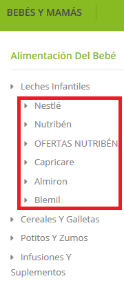 Baldink Posted February 14, 2017 Share Posted February 14, 2017 (edited) Hola. En el menú horizontal hay varias marcas situadas como subcategorias que nuestro cliente quiere ocultar solo en este menú horizontal, no en el de categorias. http://farmaciamartinzamora.com/ Ejemplo: 1. BEBÉS Y MAMÁS 2. Alimentación del bebé 3. Leches infantiles 4. Nestlé, Nutribén, OFERTAS NUTRIBÉN, etc... Entonces, como se podrían ocultar estas marcas (subcategorías) desde este nivel en el menú horizontal?? Gracias de antemano. Edited February 15, 2017 by Baldink (see edit history) Link to comment Share on other sites More sharing options...