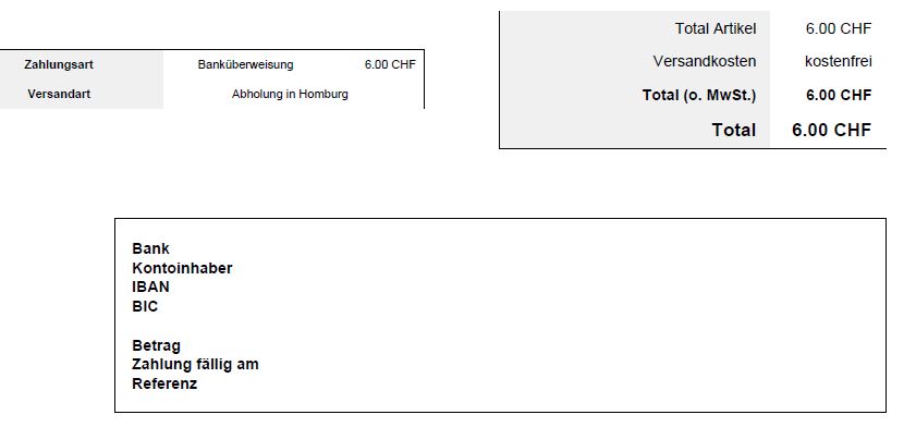 Bei meinen Rechnung per pdf kommt zwischen dem Totalbetrag und der Footer-Zeile ein rechteckiges Fenster wo eigentlich die Bankdaten stehen sollten.