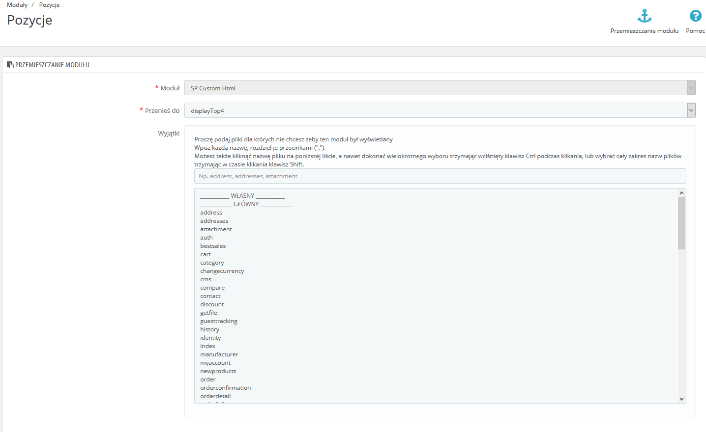 mam problem, mianowicie w szablonie mam u dołu strony 3 pozycje i w 1 z nich jest obecnie moduł prezentujący 4 linki do aktualności - chciałbym go zamienić na inny - custom HTML. Przeczytałem instrukcję z wątku https://www.prestashop.com/forums/topic/284463-pozycja-modu%C5%82%C3%B3w-i-wy%C5%9Bwietlanie-na-wybranych-stronach/