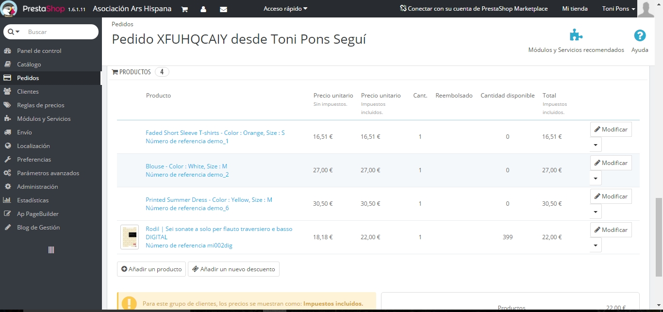 toniflute Posted February 26, 2017 Share Posted February 26, 2017 Necesito ayuda urgente!! Cuando se genera la factura, se añaden productos demo de la plantilla. Creo que solo pasa cuando se compran productos digitales. Ya eliminé los productos de la base de datos, en ps4x_product. Además, el precio total sale bien. Es como si se hubiera vuelto loco. Os adjunto la imagen. Link to comment Share on other sites More sharing options...