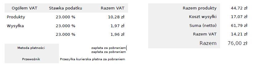 Arek W Posted February 28, 2017 Author Share Posted February 28, 2017 Jeśli chodzi o plik invoice.tpl to nawet po podmianie na oryginalny, jest bez zmian - a co ciekawe to te dwie kwoty vat za wysyłkę to są połowiczne - po dodaniu ich wychodzi to co powinno być jako jedna kwota podatku. Link to comment Share on other sites More sharing options...