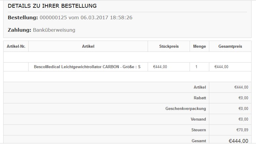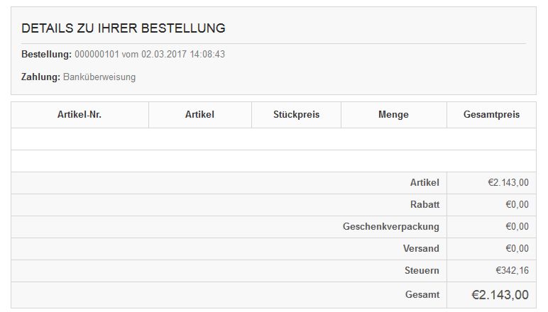 habe das Problem das in der Bestellbestätigung keine Artikel und die dazugehörogen Werte angezeigt werden. (Siehe Bild)
