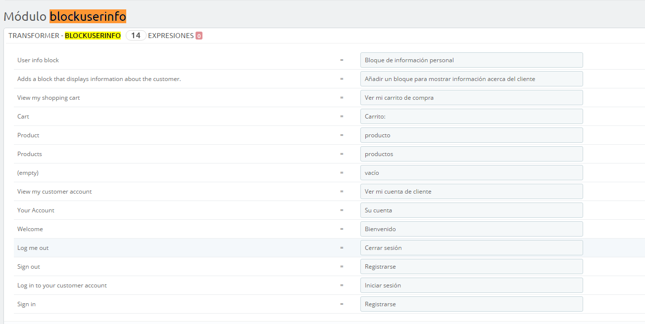 nadie Posted March 6, 2017 Share Posted March 6, 2017 Buenas tardes. Estoy teniendo problemas a la hora de traducir un campo de mi web. Arriba, en la parte superior, aparece la palabra "Welcome", la cual no soy capaz de encontrar en traducciones. Después de indagar por firebug en firefox, veo que pertenece al blockuserinfo, pero por más que entro no hay ningún campo que ponga Welcome. Adjunto foto de lo que quiero cambiar. ¿Podéis echarme una mano? La web es http://bateriassevilla.com/ Gracias. Estoy viendo tu tienda en este momento, En la pestaña Localización -> Traducciones Modificar Traducciones -> Traducciones de los módulos Has buscado el bloque "Módulo blockuserinfo" u ¿no? Link to comment Share on other sites More sharing options...