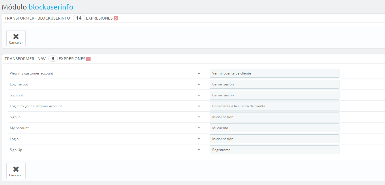 nadie Posted March 6, 2017 Share Posted March 6, 2017 Buenas noches, Estimado lk2_89, Tras mirar en tu alojamiento dentro del directorio: /themes/transformer/modules/blockuserinfo_mod Los ficheros: nav.tpl y nav-mobile.tpl He visto que en tu caso la palabra en cuestión, la esta cogiendo de esta variable: {assign var='welcome' value=Configuration::get('STSN_WELCOME', $lang_id)} Esta variable se usa en ambos tpl para hacer unas determinadas comprobaciones y luego al parecer la esta usando tambien para mostrar un valor. (No me he puesto a mirarte la obtencion de valores, porque no he tenido tiempo, y bueno ya sabes el tiempo en el foro es altruista)Lo que te he hecho momentaneamente es comentarla solo en la parte donde muestra el mensaje en pantalla por un l s para que tu luego puedas gestionaresa traduccion desde traducciones de los modulosAdjunto pantallazo (nav.tpl modificado) nav-mobile.tpl (modificado) Adjunto pantallazo Ahora me he ido en tu tienda a la pestaña Localización -> Traducciones -> Modificar Traducciones -> Traducciones de los modulos Te he buscado el bloque: Módulo blockuserinfo_mod -> NAV y NAV_MOBILE Y ahi puedes cambiar la palabra: Palabra Clave (Bienvenido) Te he puesto Bienvenido. Adjunto Pantallazo (NAV) Adjunto Pantallazo (NAV_MOBILE) 1 Link to comment Share on other sites More sharing options...