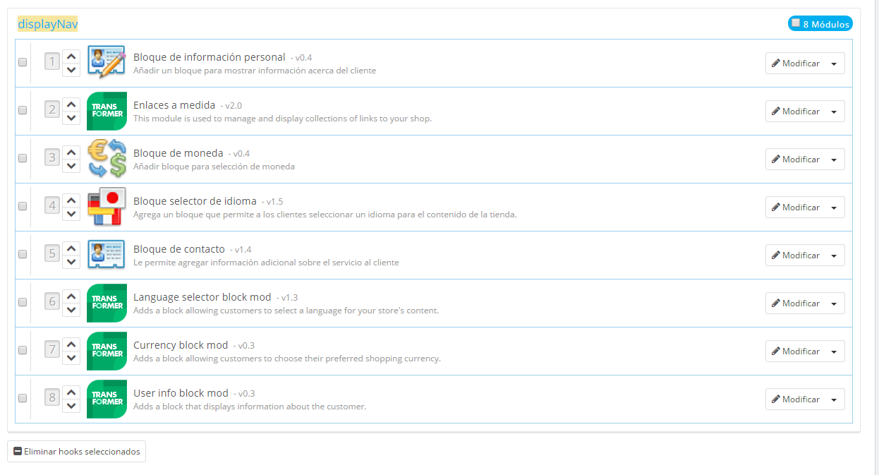 nadie Posted March 6, 2017 Share Posted March 6, 2017 Ahí lo llevas! Pdta: muchas gracias por las molestias. Vaya no llevan el icono por defecto que suelen llevar. Puedes verificar un momento, haz boton derecho(raton) -> copiar dirección de la imagen , sobre la imagen que esta al lado de user info mod y decirme que ruta te da. Saludos, Por otro lado, en tu plantilla, ¿tienes el fichero "nav.tpl" en el directorio:? /themes/plantilla/modules/blockuserinfo/ (Es que quiero verificar una cosa, es decir quiero verificar el nombre del modulo que usa tu plantilla, para ver si es el mismo que se usa en la default) PD: Te he enviado un privado. Link to comment Share on other sites More sharing options...