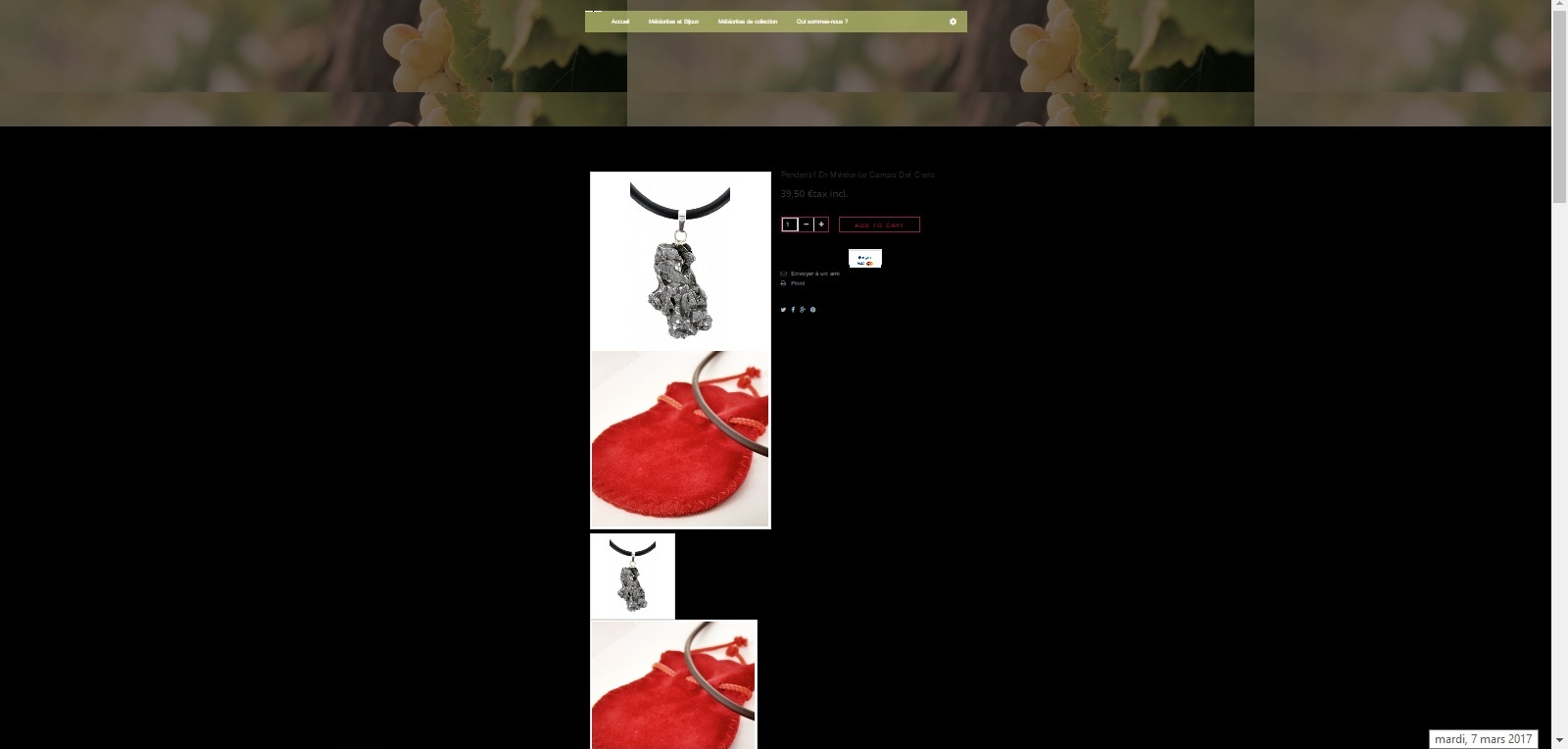 JMétéorite Posted March 7, 2017 Author Share Posted March 7, 2017 Vous avez d'autre soucis, les images sur la fiche produits ne s'afichent pas corectement essayez d'enlever l'option paypal express.. Bonjour, Elles ne s'affichent pas correctement ? Vous voulez dire qu'elles ne sont pas au bon format ? Concernant votre suggestion, j'ai essayé mais cela n'a rien changé :/ Merci d'avoir répondu ! Link to comment Share on other sites More sharing options...