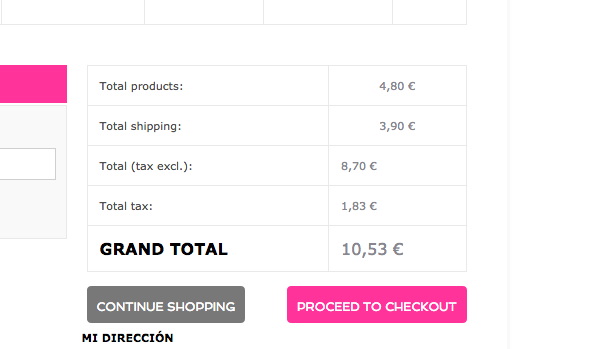 baravaro Posted March 10, 2017 Author Share Posted March 10, 2017 He copiado el codigo de los impuestos que aparece en shopping-cart.tl <tr class="cart_total_price"> <td>{l s='Total (tax excl.):'}</td> <td class="price" id="total_price_without_tax">{displayPrice price=$total_price_without_tax}</td> </tr> Pero no muestra el valor de los impuestos. No se porque no los muestra Link to comment Share on other sites More sharing options...