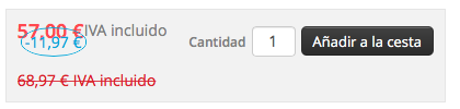 txuacode Posted March 10, 2017 Share Posted March 10, 2017 (edited) Hola a todos. Tengo un problema y es que cuando incluyo articulos con precio con descuento me aparece su precio original el precio con descuento y el descuento aplicado , el problema es que ese importe se me solapa con el precio final (vamos lo que es la imagen del precio , y queria desplazarlo para que no se monten uno sobre otro. Os dejo una imagen para que veias lo que sucede y a ver si se puede solucionar . Gracias Edited March 10, 2017 by txuacode (see edit history) Link to comment Share on other sites More sharing options...