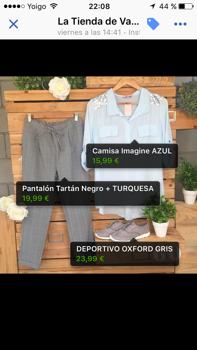 MaletasOriginales Posted March 10, 2017 Share Posted March 10, 2017 (edited) Buenas tardes, tengo una tienda montada en Prestashop y quiero empezar a hacer anuncios en Facebook Ads. He visto tiendas que suben una foto con varios productos y que en la foto dice "toca para obtener más información". Cuando tocas salen los nombres de los productos y los precios de cada de ellos. Después debajo de la foto aparece "Productos mostrado:" y vuelve a salir el nombre, el precio en un recuadro en el que si tocas te redirecciona directamente a ese producto en su web. ¿alguien sabe como se puede hacer eso? Dejo imágenes de todo esto. Gracias y buen fin de semana Pilar Edited March 10, 2017 by MaletasOriginales (see edit history) Link to comment Share on other sites More sharing options...