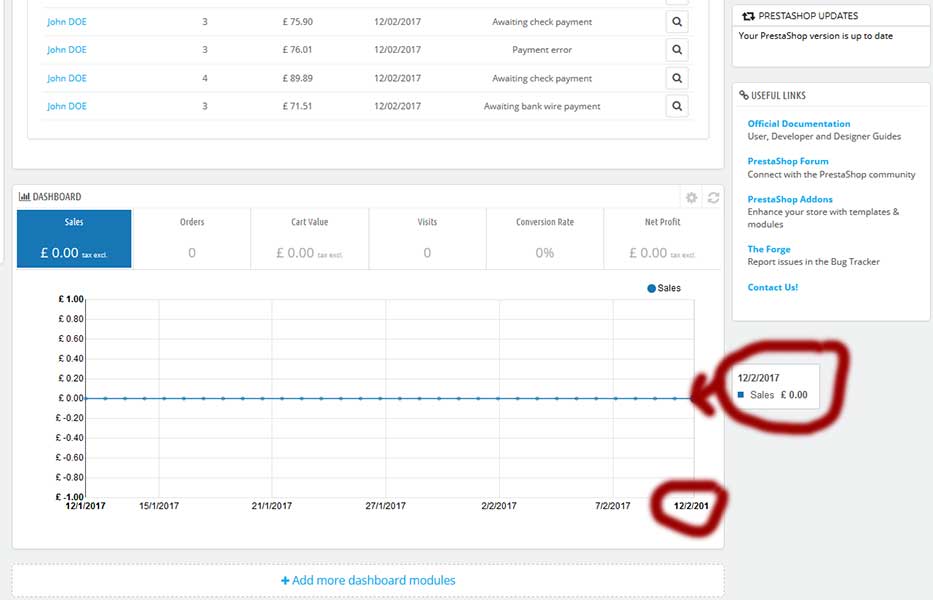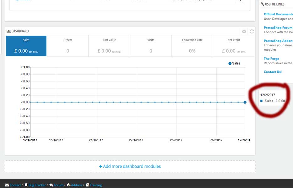 mallrat Posted March 12, 2017 Author Share Posted March 12, 2017 (edited) Hi shokinro Thanks your your reply. No, it is not in Demo Mode. As you can see in the screenshot, the 'Forecast' is logging data OK. The Dashboard graphic is still showing 0 on all stats and the newest stats date is exactly one month behind. Also for some reason the dashboard relocated to the bottom after I reset the module. I checked that the server is running the right date by uploading the following php file, and the date was correct <?phpecho "Today is " . date("Y/m/d") . "<br>";echo "Today is " . date("l");?> Edited March 12, 2017 by mallrat (see edit history) Link to comment Share on other sites More sharing options...