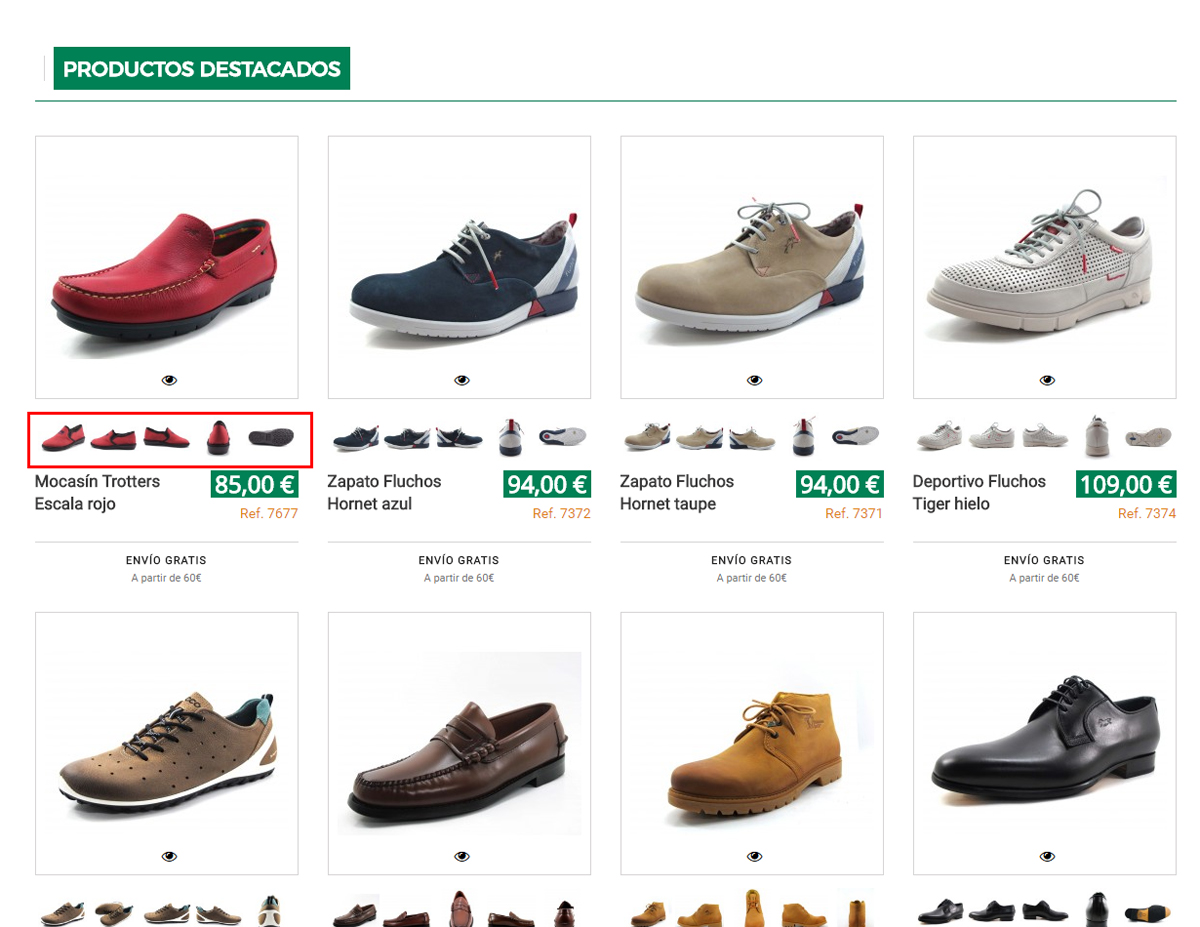 Jorge Difusión Posted March 15, 2017 Share Posted March 15, 2017 Buenos dias Tengo un problema con el carrusel de productos destacados de una tienda online. Más concretamente con las miniaturas del producto. Lo curioso es que el primer producto destacado muestra las miniaturas de otro producto. Y da igual el producto destacado que se coloque como primero, siempre son las mismas miniaturas del susodicho. He entrado a imágenes, para regenerar los thumbnails de "home_default" y "cart_default", pero continúa igual. ¿Alguna idea? El tema es el default de prestashop 1.6, con unas modificaciones en los estilos Adjunto imagen para que veáis el caso, con un recuadro en rojo en el primero. Gracias y un saludo Link to comment Share on other sites More sharing options...