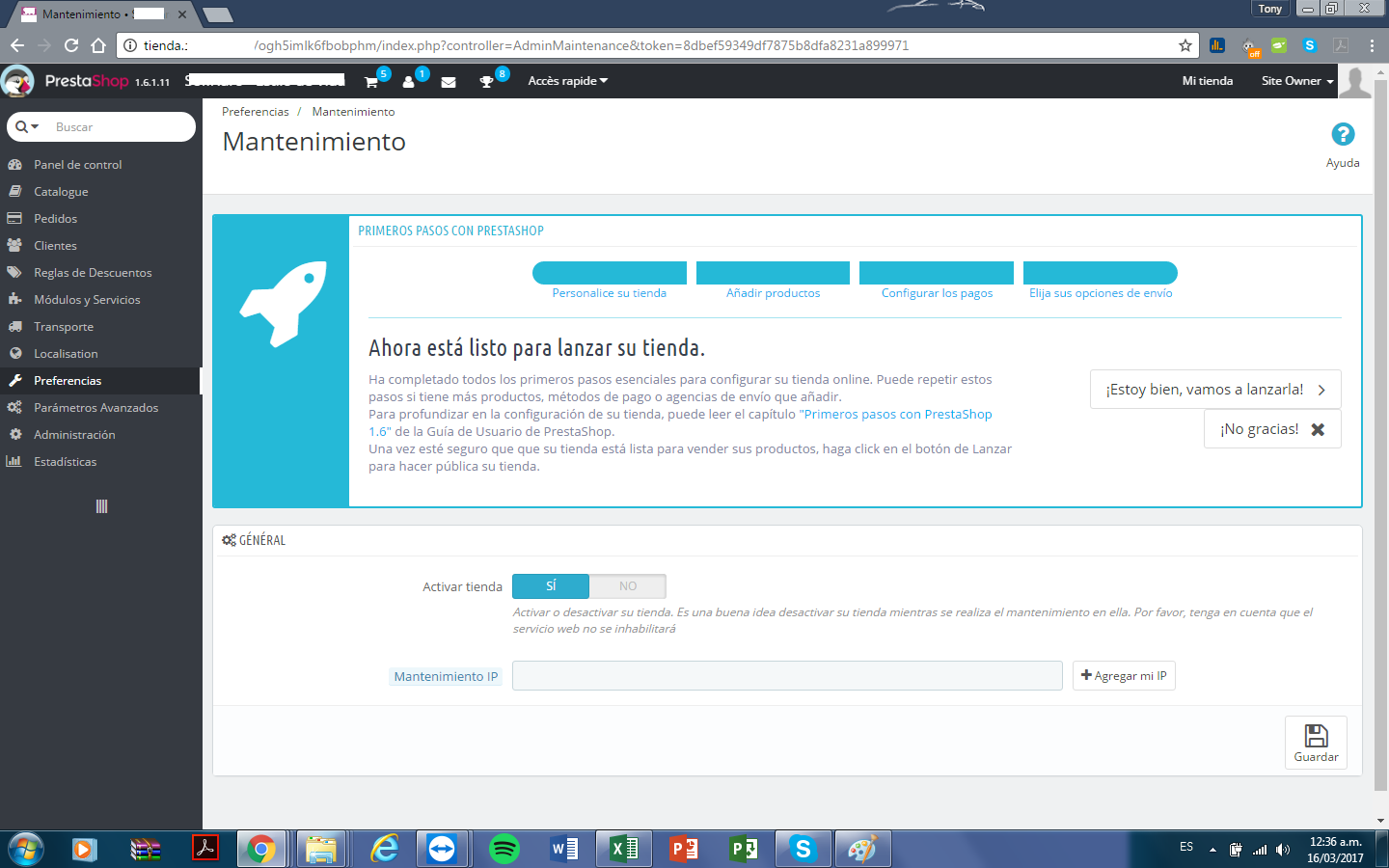 Puse la tienda en modo mantenimiento y no se ve ni el aviso de mantenimiento