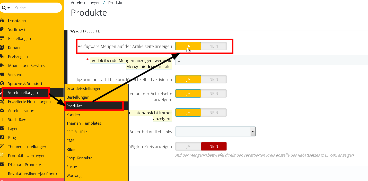 Nun, das ist möglich, erfordert jedoch Programmieraufwand. Was du vorab machen kannst, ist die Menge im Shop anzeigen zu lassen (auf der Produktseite).