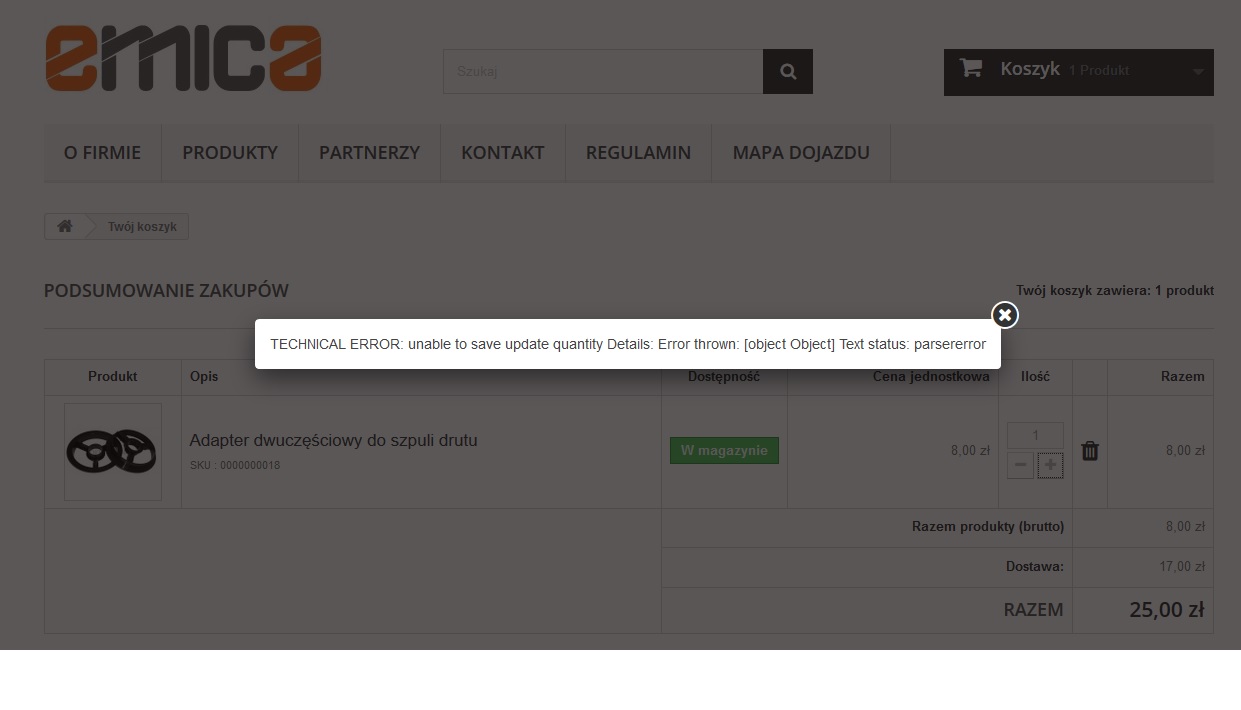 Przy próbie zwiększenia ilości produktu w koszyku pojawia się błąd :