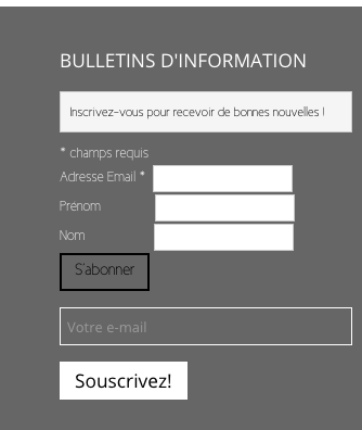 chermome Posted March 21, 2017 Share Posted March 21, 2017 Bonjour, je rencontre un problème (certainement basic, j'avoue mes lacunes) lorsque je souhaite customiser mon footer. http://chermome.com/fr/ dans la partie droite, je souhaite supprimer "bulletin d'information" ainsi que le cadre "votre email" et "souscrivez" car j'ai rajouter un lien vers mes formulaires mailchimp et du coup il y a un doublon. Est ce possible de supprimer ces élèments ? Si oui, où dois-je me rendre pour le faire ? Je vous remercie d'avance pour votre aide. cf : photo en attache Link to comment Share on other sites More sharing options...