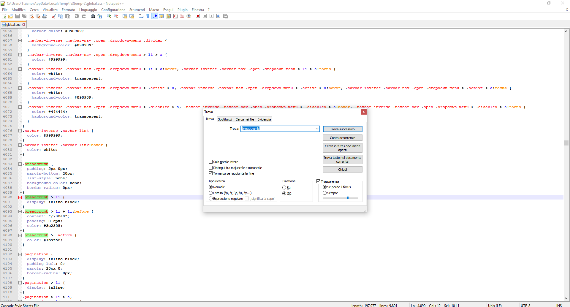 Costantini Posted March 25, 2017 Author Share Posted March 25, 2017 hai sbagliato completamente posto non so che template usi comunque di solito il file global.css lo trovi in themes/tuo tema/css proprio in quel global.css nn riesco a trovare nessun riferimento sul breadcrumb, solamente queste poche cose ma nn so come agire. Link to comment Share on other sites More sharing options...