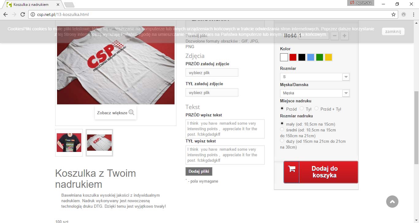 W zakładce Katalog -> Produkty -> Produkt -> Dostosowanie dodałam pola tekstowe.