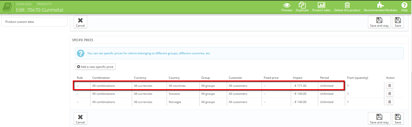 Invece con il tema nuovo mi mostra lo sconto % solo se imposto lo sconto % sul prodotto.
