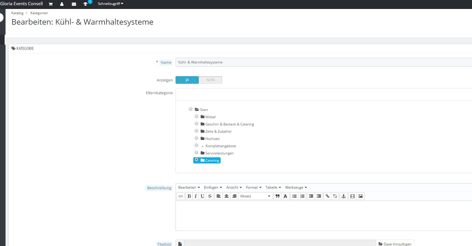 lookfine Posted March 24, 2017 Share Posted March 24, 2017 Hallo zusammen, ich habe versucht eine Unterkategorie in eine neue Oberkategorie zu verschieben. Klappte auch einwandfrei. Doch die Unterkategorie wir im Blocktopmenue nicht unter der neuen Oberkategorie angezeigt. Wenn man auf die neu Oberkategorie klickt öffnet sich die Seite und man bekommt die Unterkategorien in der Kachel oder Listenansicht zu sehen. Klicke ich eine der angezeigten Unterkategorien an, öffnet sich die Kategorie und in der Breadcrumb wird die alte oberkategorie angezeigt. Zum besseren Verständnis habe ich ein Screenshot: die Kategorie Kühl & Warmhaltegeräte ist eigentlich unter der Oberkategorie Catering. Früher war Sie unter dem Oberpunkt Geschirr... Ich habe schon alle Cache gelöscht, Javascript ans Ende verschiebe eingestellt, die Listen bei den Kategorien neu aufgebaut. Nichts hilft. Vielleicht kann mir jemand weiterhelfen. Vielen Dank Carsten Link to comment Share on other sites More sharing options...