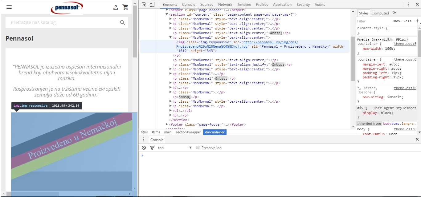 ljubica Posted March 27, 2017 Share Posted March 27, 2017 (edited) Hi, I add a class="img-responsive" for images, but it isn't work. I tried it on one page only, here http://www.pennasol.rs/content/7-pennasol (you can see it in attachment). If anyone can help I would appreciate it. Edited April 6, 2017 by ljubica (see edit history) Link to comment Share on other sites More sharing options...