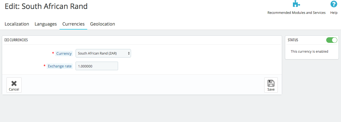 pietam Posted March 28, 2017 Share Posted March 28, 2017 Hi. I set my shop's default currency to South African Rand - ISO code ZAR and Symbol R. In the front end of my shop the prices are displayed with the ISO code in front and not the currency symbol. ZAR instead of R. I rread all the previous threads on the forum but the steps they advise to take in order to edit the currency is not available in my Prestashop 1.7 install. Please the the screen shots attached. Can anyone help? Thank you & kind regards. Link to comment Share on other sites More sharing options...