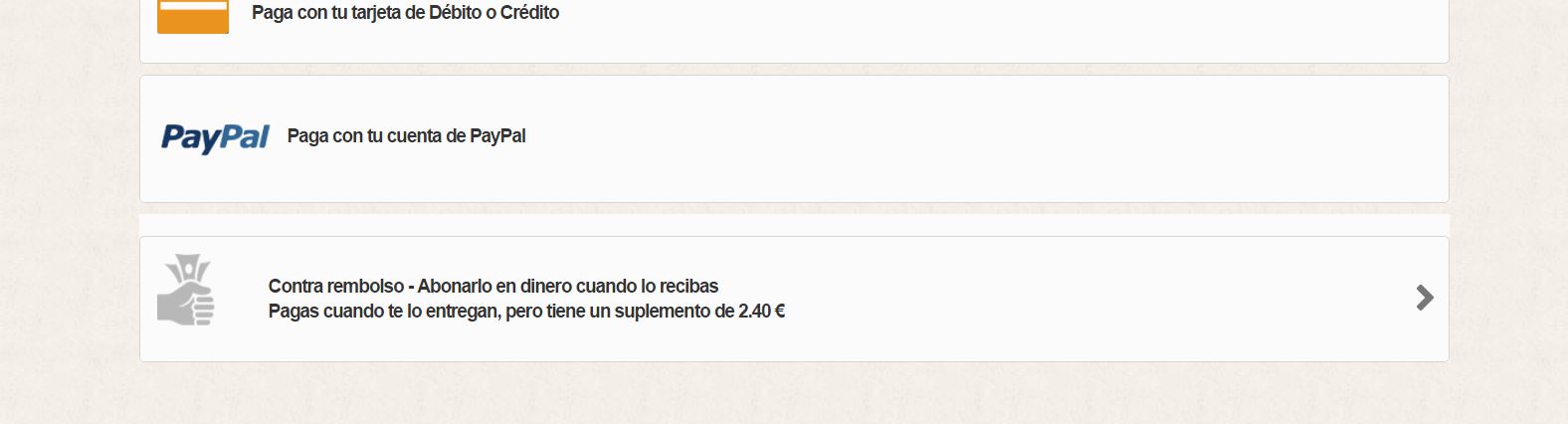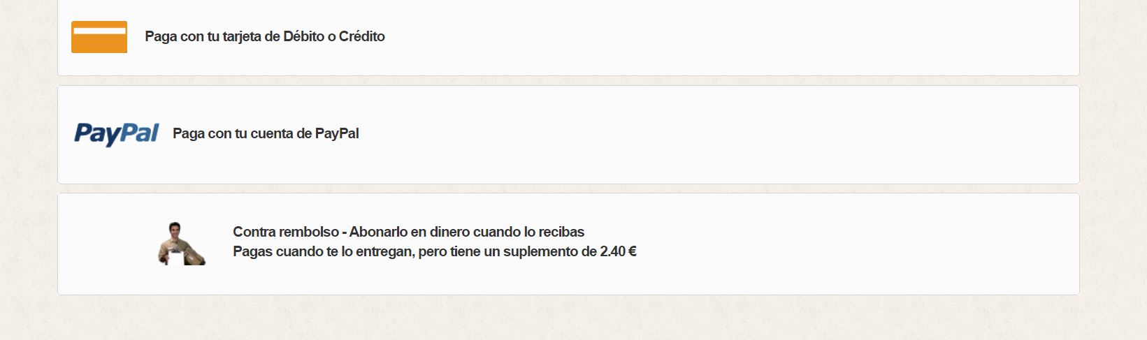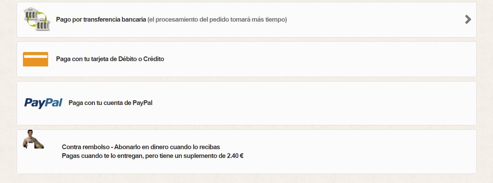 Noeliapmm Posted March 29, 2017 Share Posted March 29, 2017 (edited) Hola. Después de muchas horas, para lo que luego seguramente es una tontería, acudo a vosotros a ver si podéis ayudarme. Se trata del Logo del pago contra reembolso, el módulo que lleve de origen Prestashop. Es el 1.6.1.11 Sale un señor con un paquete. Todo está bien, excepto que el señor, tiene la manía de desplazarse un buen trozo a la derecha, y a su vez, lo hace con el texto, lo de lo deja descuadrado con los otros medios de pago..... Os dejo captura He probado mucho, pero al final no hay forma de que vaya a su sitio..... Se sale del cuadro, se baja, se pone en otro superior..... Sí que he comprobado que la línea que lo "mueve" es esta: <a href="{$link->getModuleLink('cashondeliveryplus', 'validation', [], true)}" title="{l s='Pay with cash on delivery' mod='cashondeliveryplus'}"> SI la quito, va a su sitio (aunque se estropean los márgenes del recuadro), pero claro, ya no tiene enlace al siguiente paso del reembolso.... SI pongo la imagen antes de la línea esa, pues el icono sale alto, y debajo a un lado, el texto..... pero dejarlo como el resto de métodos de pago, no lo consigo. El archivo que "toco" es /modules/cashondeliveryplus/views/templates/hook/payment.tpl Si alguien puede echarme una mano..... Muchas gracias. Saludos Edited March 31, 2017 by Noeliapmm (see edit history) Link to comment Share on other sites More sharing options...