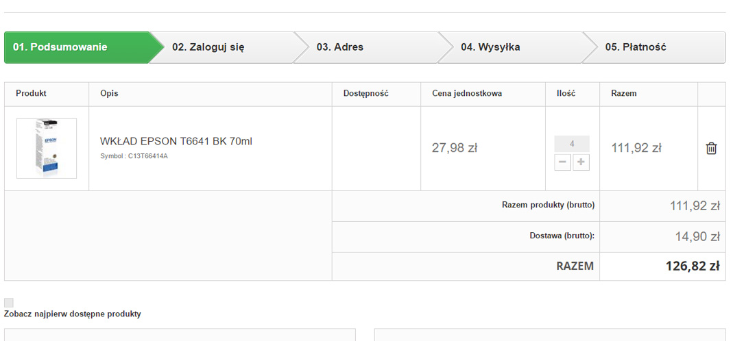 0 Inkton Posted March 31, 2017 Author Share Posted March 31, 2017 (edited) Masz na myśli ten "Zobacz najpierw dostępne produkty" jest on ponieważ masz włączoną możliwość zamawiania produktów których nie ma na stanie, tylko tłumaczenie nie trafione ponieważ powinno być coś w rodzaju "Wyślij najpierw produkty dostępne, a niedostępne wyślij później." Tak na marginesie. Czy to się pojawia zawsze czy tylko jeżeli w koszyku jest towar którego nie ma na stanie? Mam wyłączone pokazywanie stanów magazynowych, więc to może być mylące dla klienta. Jak można to wyłączyć, żeby się nie pokazywało? Ewentualnie czy takie rozwiązanie tworzy 2 zamówienia z towarami które są i których nie ma? Sklep.inkton.pl gdyby było potrzebne Edited March 31, 2017 by Inkton (see edit history) Link to comment Share on other sites More sharing options...
