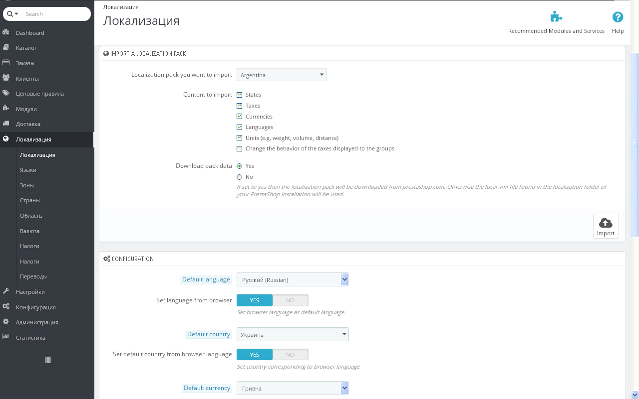 Kvarmall Posted April 6, 2017 Share Posted April 6, 2017 Здравствуйте, скачал Престашоп 1.6.1.12 (последняя версия 1.6), и наткнулся на такую проблему, меню и подменю в левой стороне все на русском языке, но стоит перейти в любое из этих подменю и выходит , что каждое из них на английском. Подскажите пожалуйста, можно ли сделать русский язык везде? Я делал вот так: Локализация>переводы>переводы бэк офиса и далее ручками переводим нужный нам текст. Ну или скачать уже готовый файл языка. https://yadi.sk/i/nQVInMhd3GiU63 Link to comment Share on other sites More sharing options...