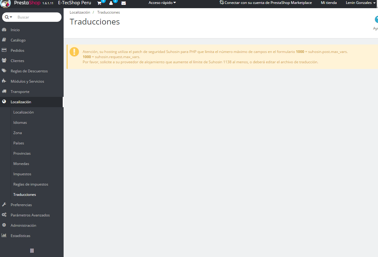 Sergio Ruiz Posted April 2, 2017 Share Posted April 2, 2017 (edited) Create un fichero con notepad++ https://notepad-plus-plus.org o con el editor que tu prefieras, llamalo "php.ini" y introduce este contenido: suhosin.post.max_vars=10000 suhosin.request.max_vars=10000 Ahora sube ese fichero mediante el "FTP" al directorio u carpeta de administración de tu tienda mediante FTP. Una vez realizado eso, comprueba si te deja acceder a las traducciones. Si sale el mismo fallo, preguntale a tu empresa de alojamiento web, como subir esos parametros. (Ya que eso es tema de configuración del alojamiento) Ah, un consejo si tu plantilla la que uses, lleva muchas cosas sin traducir, si en Localización -> Traducciones -> Copiar, copias las traducciones de la plantilla por defecto a la tuya, posiblemente luego desde Localización -> Traducciones -> Modificar Traducciones tengas menos trabajo que hacer para realizar las traducciones. Un Saludo, Edited April 2, 2017 by Sergio Ruiz (see edit history) 1 Link to comment Share on other sites More sharing options...
