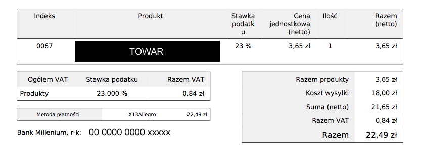 Koszt wysyłki: Podany jest brutto, mam zdefiniowany netto z 23% VAT