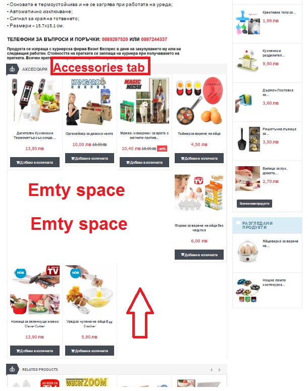 tapukatata Posted April 3, 2017 Share Posted April 3, 2017 When I add more than 4 products in accessories tab the arrangement of the products goes wrong. There is empty space between some product. I've attached a screenshot. Link to the page: http://iskambg.com/stoki-za-doma-bita/1287-%D1%8F%D0%B9%D1%86%D0%B5%D0%B2%D0%B0%D1%80%D0%BA%D0%B0-%D0%B2%D0%B0%D1%80%D0%B5%D0%BD%D0%B5-%D1%8F%D0%B9%D1%86%D0%B0-%D0%BF%D0%B0%D1%80%D0%B0.html Anyone can help me to remove that empty space? Link to comment Share on other sites More sharing options...