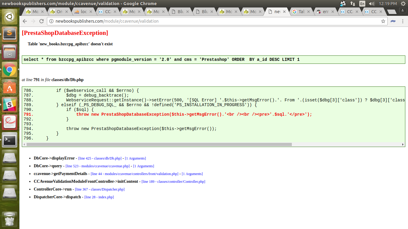 abdukannur Posted April 7, 2017 Share Posted April 7, 2017 Hi, I am trying to integrate cc avenue payment gateway to my prestashop 1.6 shop. But it is giving the following error (screen shot attached) when I click 'pay with cc avenue' option on my cart. [PrestaShopDatabaseException]Table 'new_books.bzccpg_apibzcc' doesn't exist ................... ................... ................... DbCore->displayError - [line 425 - classes/db/Db.php] - [1 Arguments] DbCore->query - [line 523 - modules/ccavenue/ccavenue.php] - [1 Arguments] ccavenue->getPaymentDetails - [line 44 - modules/ccavenue/controllers/front/validation.php] - [1 Arguments] CCAvenueValidationModuleFrontController->initContent - [line 189 - classes/controller/Controller.php] ControllerCore->run - [line 367 - classes/Dispatcher.php] DispatcherCore->dispatch - [line 28 - index.php] How can I solve the issue? working on prestashop 1.6.1.5 I have attached the cc avenue module. It says the version is 1.6.1.4. Is that the issue? CCAvenue_MCPG_PrestaShop_1.6.1.4.zip Link to comment Share on other sites More sharing options...