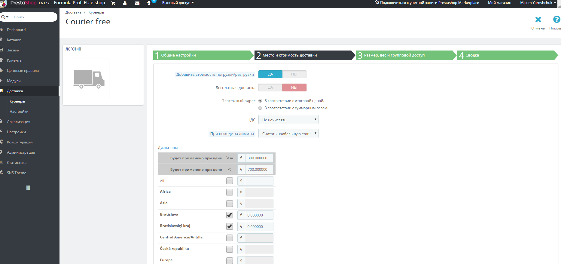 Izumec Posted April 18, 2017 Author Share Posted April 18, 2017 Вы хотите чтобы определенный перевозчик если он не попадает в диапазон суммы просто не отображался? Ну что бы хотя бы его нельзя было выбрать. Например, я делал так у меня 4 перевозчика 1. почта - в зависимости от веса читает стоимость доставки. 2. курьер - стоимость всегда одинаковая не зависимо ни от каких параметров ( для одного региона) 3. Почта - бесплатная доставка от суммы более 50 евро. не важно какой вес и только для одного региона. В правилах я ставлю сумма больше или равно 50 евро и меньше 100000000, стоимость ставлю 0 4. Курьер - бесплатная доставка от суммы более 100 евро. не важно какой вес и только для одного региона. В правилах я ставлю сумма больше или равно 100 евро и меньше 100000000, стоимость ставлю 0 перевозчики 1.2 отображаются всегда и работают правильно, а вот перевозчики 3,4 отображаются не зависимо от того какая сумма заказа и доступны к выбору, и получается что перевозчиков 3,4 бесплатная доставка можно выбрать всегда. независимо от того сколько человек заказал. В идеале мне бы конечно сделать так что бы при применении правила бесплатной доставки перевозчики 1,2 не отображались вообще и наоборот. Link to comment Share on other sites More sharing options...