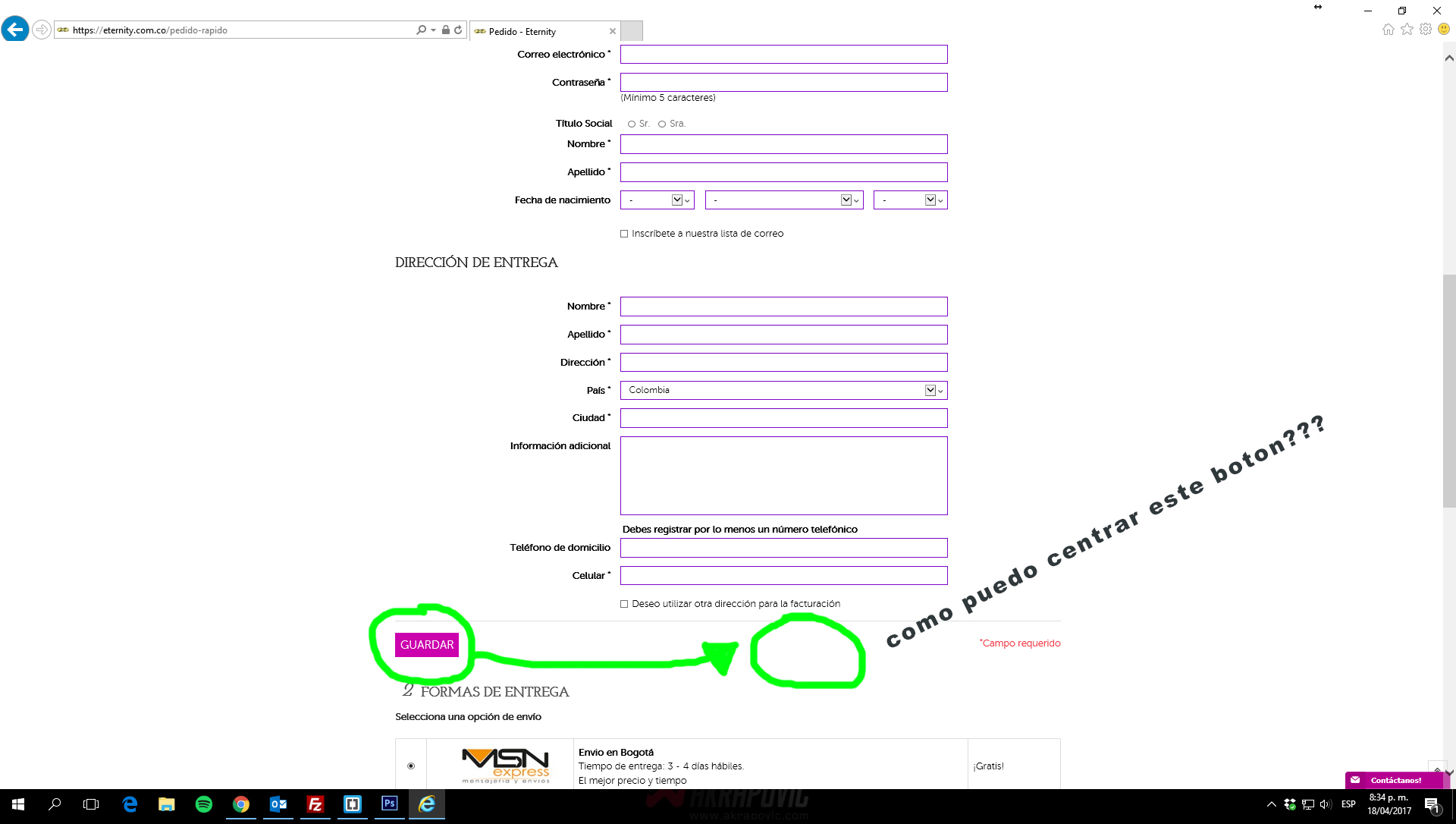 jfbalcazar Posted April 19, 2017 Share Posted April 19, 2017 (edited) Hola a todos los del foro. Tengo un pequeño problema con el botón de "GUARDAR" en la pagina de pedido rápido. Los clientes aveces no lo ven y puede entorpecer el proceso de compra. La solución es ponerlo en el centro para que tenga continuidad con el formulario, pero no se que archivo modificar ni que hacer... No soy muy bueno con los códigos si me pueden especificar nombre y ruta del archivo se los agradezco. Buen día a todos! Edited April 20, 2017 by jfbalcazar (see edit history) Link to comment Share on other sites More sharing options...