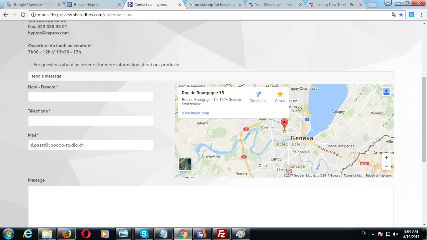 di.pasat Posted April 19, 2017 Share Posted April 19, 2017 Version Prestashop 1.6. Where can I set up the email to be send by Contact Form? When I'm trying to send message in contact form it's not send to email that is set up in Customer->Contacts->Customer Service ( Backend Part ). I set up Advence Parameters->Email to be send to Curstomer Service but it's not working. Thanks for help. Link to comment Share on other sites More sharing options...