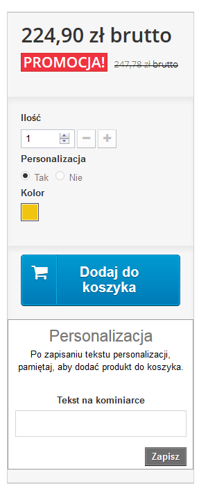 Mam moduł, który pojawia się pod buttonem dodaj do koszyka i pozwala wpisać i zapisać tekst personalizacji.