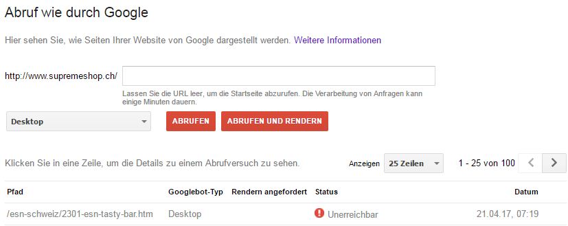 Das zweite: abruf wie durch Google geht gar nicht mehr: Seite unerreichbar, obschon die Seiten erreichbar sind. kann das evtl mit irgend einer Länder-Einstellung zusammen hangen?