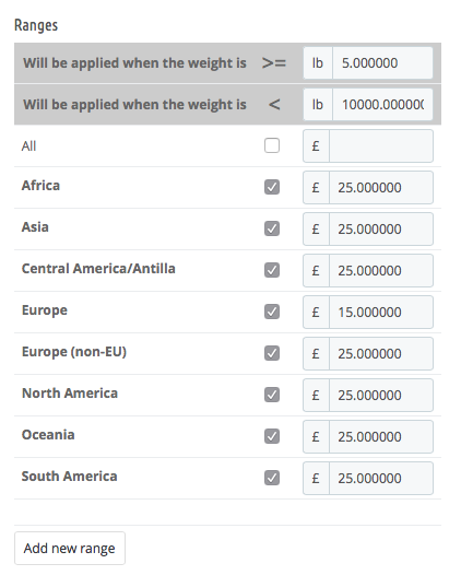 Walrus Posted April 21, 2017 Share Posted April 21, 2017 (edited) ITE, I used the price ( <= or < ) options and it seems to working fine. ------------------------- I want to sell prints of my photos, framed and unframed. I have set attributes so price increases as customer chooses larger sizes, and/or includes framing. How do I set options so that shipping price increases in line when customer selects the various frame sizes, which means packages will be larger, and heavier? For example, customer chooses: Option 1: no frame (default shipping: £15). Option 2: small framed print (shipping price increases to £20). Option 3: larger framed print (shipping price increases to £25). Quantity increases (price increases as weight is increased). Thanks. Edited April 22, 2017 by Walrus (see edit history) Link to comment Share on other sites More sharing options...