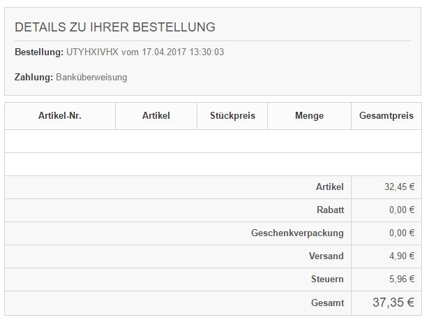 ich habe das Problem, dass in den Bestellbestätigungs-EMails die gekauften Artikel nicht aufgeführt werden, siehe Anhang.