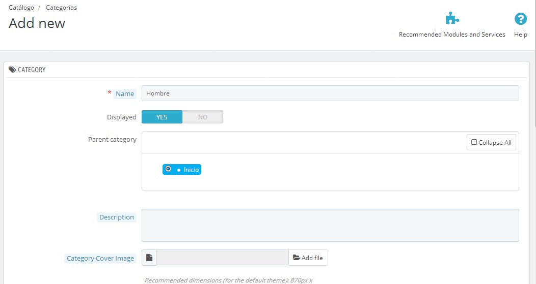 nadie Posted April 23, 2017 Share Posted April 23, 2017 cuando quiero crear una nueva categoria, sale por defecto que tiene que estar vinculada a inicio. si hay alguna forma de eliminar la categoria inicio. o viene por efecto y no se puede eliminar ? adjunto una imagen del problema. Cuando pinchas sobre ella (te sale una carpeta al lado del nombre), te salen las categorías para que eligas en que categoría quieres meter la nueva categoría. Te adjunto pantallazo ¿No te sale esa carpeta a ti? Link to comment Share on other sites More sharing options...
