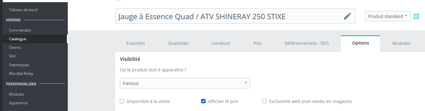 Mathos Posted 3 hours ago Share Posted 3 hours ago (edited) Bonjour, Je déterre le sujet, mais je viens d'avoir le même souci et j'ai trouvé la solution pour moi, il faut aller sur la fiche produit, puis Options. Là, la case cochée était "Afficher le prix", j'ai coché à la place "Disponible à la vente" et la case pour mettre dans le panier est apparue comme par magie Edited 3 hours ago by Mathos (see edit history) Link to comment Share on other sites More sharing options...