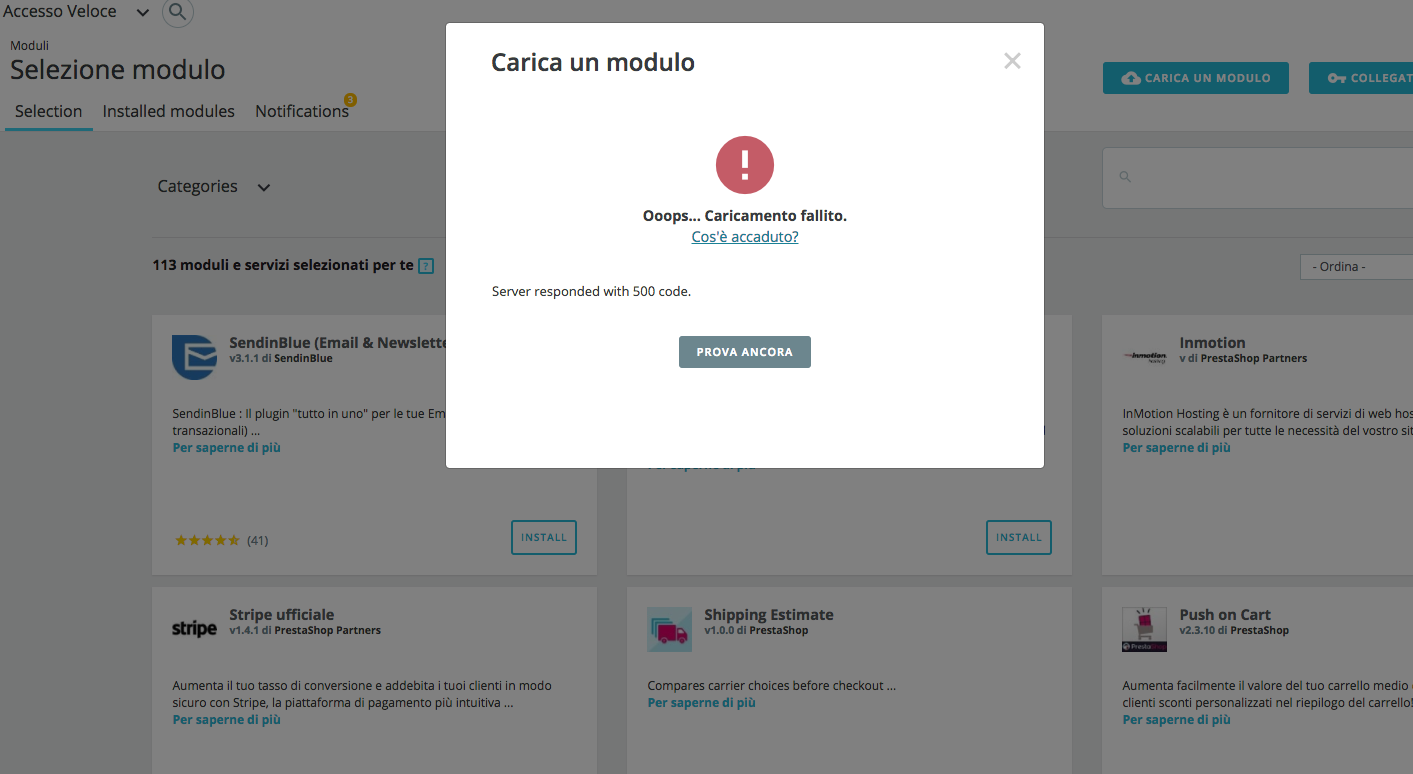 miafiglia Posted April 27, 2017 Share Posted April 27, 2017 Salve a tutti, sono nuovo in prestashop e rincorro subito al primo problema . Devo installare il modulo Paypal 4.0.1 come metodo di pagamento sulla versione di prestashop 1.7.1.0, ho provato ad installarlo da moduli e servizi e anche a scaricare il file in zip e caricarlo, ma niente. Mi da come errore Server responded with 500 code. qualcuno sa come posso fare? Dovrei installare anche il metodo di "Pagamento alla consegna" Link to comment Share on other sites More sharing options...