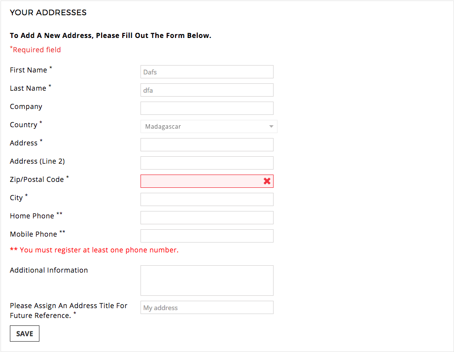 maxambrox Posted May 3, 2017 Share Posted May 3, 2017 Ciao a tutti ragazzi, sto utilizzando la versione 1.6.1.6 di Prestashop, con un tema acquistato. Vi allego lo screenshot del mio problema, in pratica nel modulo di registrazione il campo "Zip Postal Code" restituisce errore anche se è vuoto. La nazione impostata di default è l'Italia, appena si cambia nazione, qualunque essa sia, il campo "Zip Postal Code" restituisce errore. Ho provato anche a sostituire il file "statesManagement.js" come avevo letto in giro su altri topic, sempre su questo forum, ma il problema persiste. Qualcuno di voi può aiutarmi? Grazie Link to comment Share on other sites More sharing options...