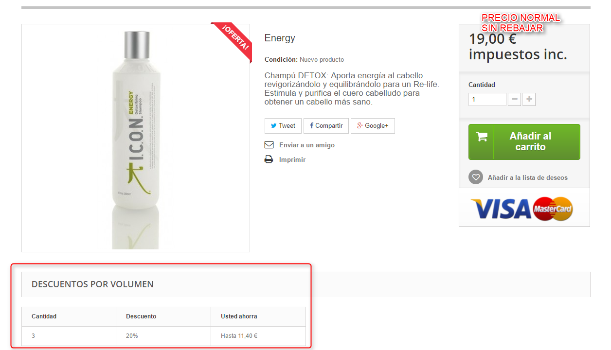 vertice Posted May 4, 2017 Share Posted May 4, 2017 (edited) Buenas. Expongo mi necesidad a ver si alguien me puede orientar sobre la mejor opción para resolverla. Quiero aplicar un descuento del 20% (descuento único, no por tramos) en pedidos superiores a 60 €, de modo que los precios de los productos se muestren inicialmente con el precio ya rebajado, y preferentemente informando de algún modo de que para disfrutar de ese descuento debes seguir sumando compras al carrito hasta alcanzar la cantidad. Es imprescindible que los precios se muestren inicialmente ya rebajados, y que la validación de si cumples la condición se haga después. Lo más próximo que estoy a esto es con la opción nativa de "Reglas del catálogo"; que casi casi resuelve la papeleta, pero no termina de servirme pues: Tras crear la regla (afectando por ejemplo a una determinada categoría), efectivamente todos los productos de esa categoría se muestran ya con el descuento aplicado de antemano. ¡Bien! No permite establecer como condición de la regla que se aplique cuando el pedido es superior a un determinado importe. ¡Mal! Puedo "trampear" creando la regla indicando que la cantidad mínima a comprar es de 3 productos, lo que en la práctica supone ya que el carrito superará ese importe (no hay productos de menos de 20 € a la venta), pero en ese caso, si la regla tiene definida una cantidad mínima, entonces el comprortamiento de Prestashop es muy distinto, y en lugar de mostrar el producto ya rebajado, lo que hace es mostrar un bloque abajo informando del descuento si compras más unidades. (esa tabla que indica "Cantidad" / "Precio unitario" / "Total ahorro") Si dejo en la regla la cantidad a 1; entonces el descuento se aplica siempre, independientemente del importe final del carro. Como véis, la opción de "Reglas del catálogo" no funciona como yo espero, dejando a un lado además que en ningún caso se mostraría información alguna en plan.. "Te faltan X € para beneficiarte de los descuentos anunciados"; cosa que he visto por alguna que otra tienda. ¿Alguien conoce algún módulo o solución alternativa para esto que expongo?. Gracias. Edited May 4, 2017 by vertice (see edit history) Link to comment Share on other sites More sharing options...