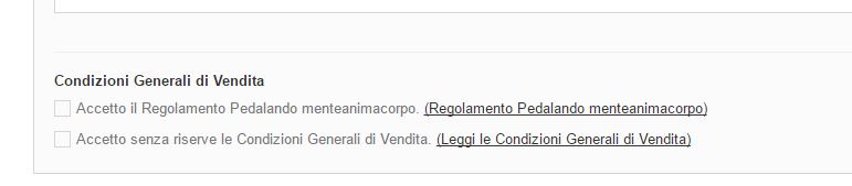 angdip Posted May 6, 2017 Author Share Posted May 6, 2017 Ciao grazie per le info sono stati utili per un'altra modifica che dovevo fare. purtroppo il problema originale persiste. Il post scritto di fretta sono cosciente che forse non era molto chiaro. Ti riporto un esempio del problema: se vedi l'immagine ci sono due righe che riguardano le condizioni di Vendita visibili nel carrello prima di proseguire con il pagamento. A me serve che la prima riga sia visibile solo ed esclusivamente per un singolo prodotto del mio catalogo. C'è un modo semplice per farlo? grazie Link to comment Share on other sites More sharing options...