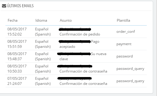 En versiones de Prestashop 1.6.1.x hay posibilidad en la ficha del cliente los ultimos emails enviados, pero yo en mi versión  (1.6.0.9) no puedo ver esos emails, de tal forma que no se si se le envía al cliente o no. De que manera puedo averiguarlo? O puedo añadir ese bloque que aparece en las versiones 1.6.1.x?